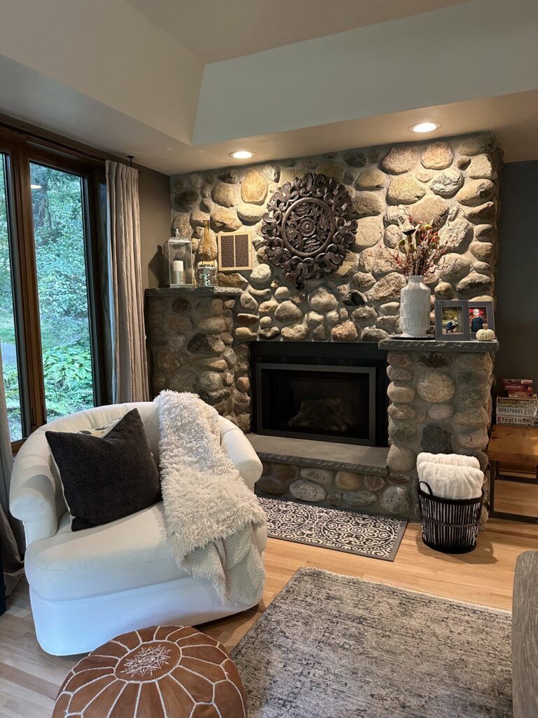 Bringing this cozy and charming lakeside property to life was a labor of love. I enjoy creating an environment where one feels comfort and ease, while also letting the personality of the surroundings shine through.